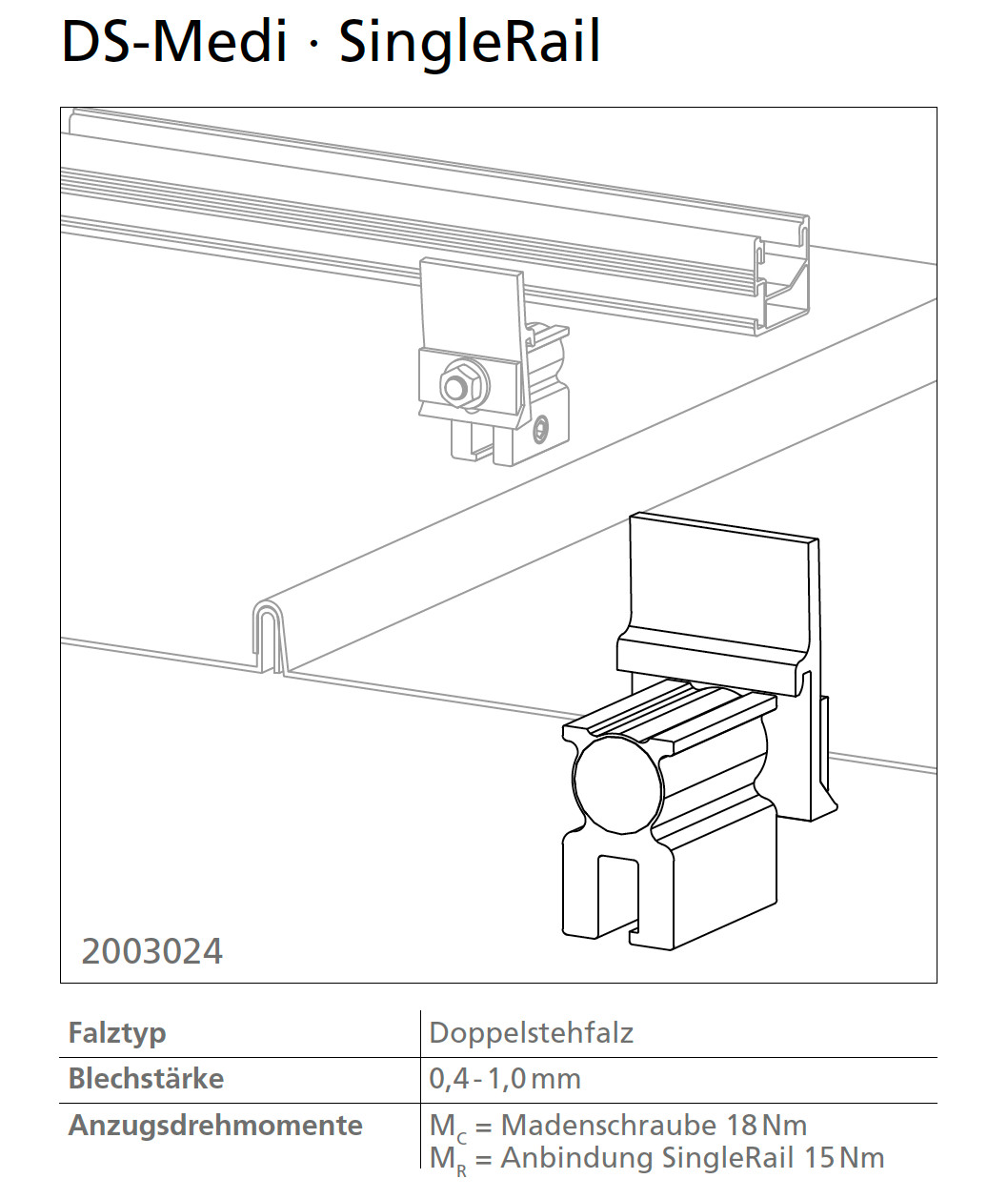 - für die Montage auf Doppelfalzprofilen, Direkte Anbindung an die SingleRail