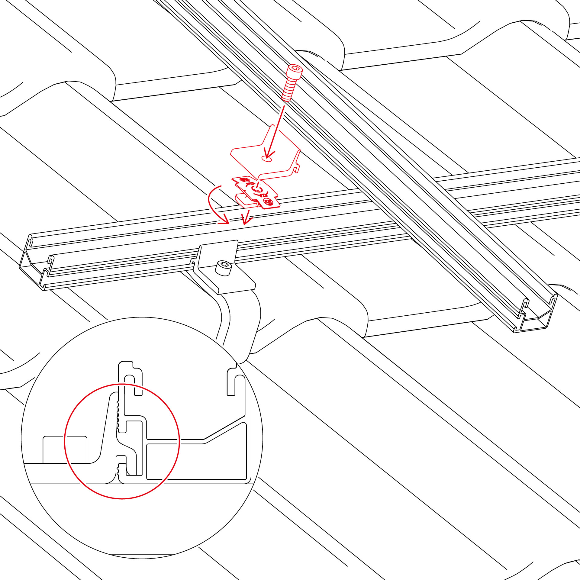 K2 Systems Climber 36/50 Set - Montage der Profilschiene SingleRail 36 und 50 im Kreuzverbund (horizontale Modulanordnung)