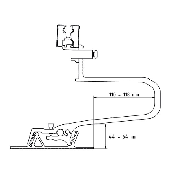 - Schiene in der Höhe verstellbar durch vormontierte Klemmkombination (für vertikale Schieneninstallation mit optional erhältlicher Klemmkombination vertikal, Art.-Nr. 11105-05 austauschen)