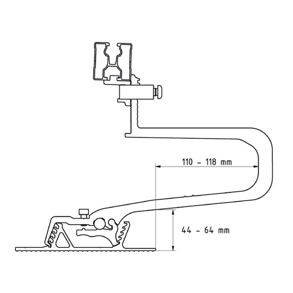 - Schiene in der Höhe verstellbar durch vormontierte Klemmkombination (für vertikale Schieneninstallation mit optional erhältlicher Klemmkombination vertikal, Art.-Nr. 11105-05 austauschen)
