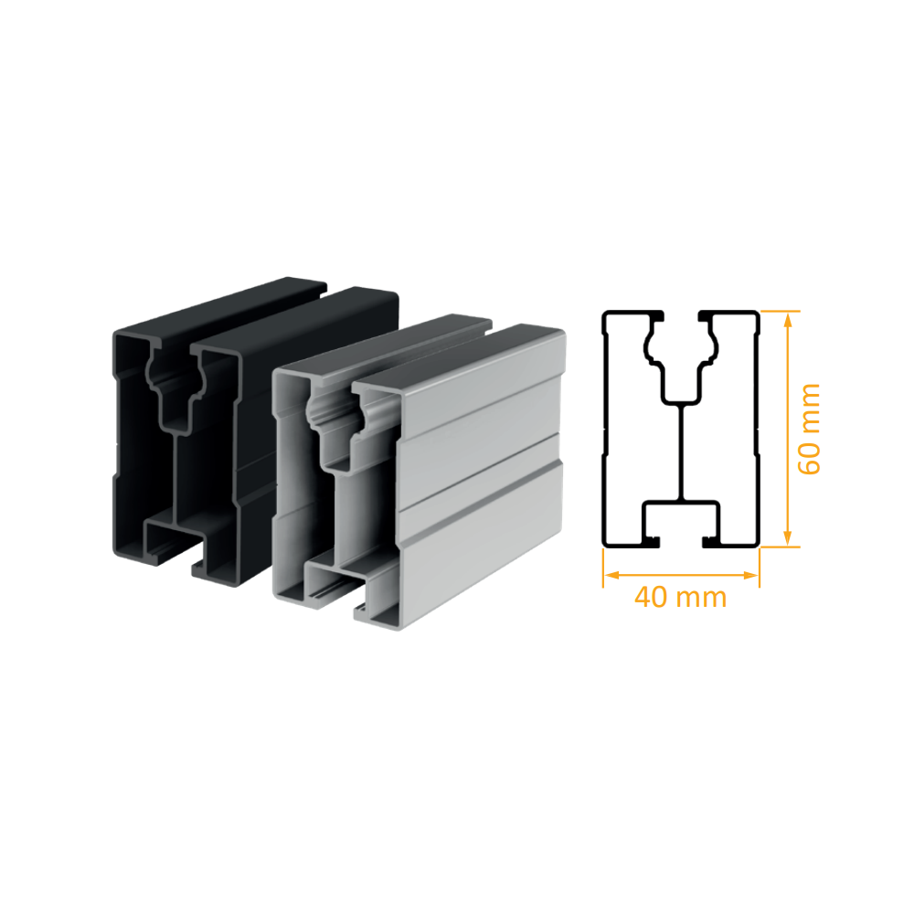 - Oberer Schienenkanal tief genug für den Einsatz von Modulklemmen für Rahmenhöhen 30 mm – 50 mm