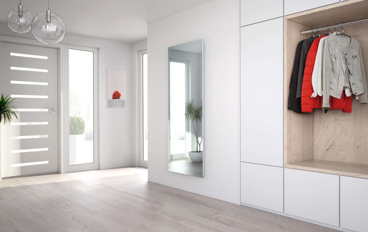 • Infrarotstrahlungsheizung zur Wandmontage (horizontal oder vertikal) aus Glas verspiegelt (6 mm starkes ESG Sicherheitsglas)